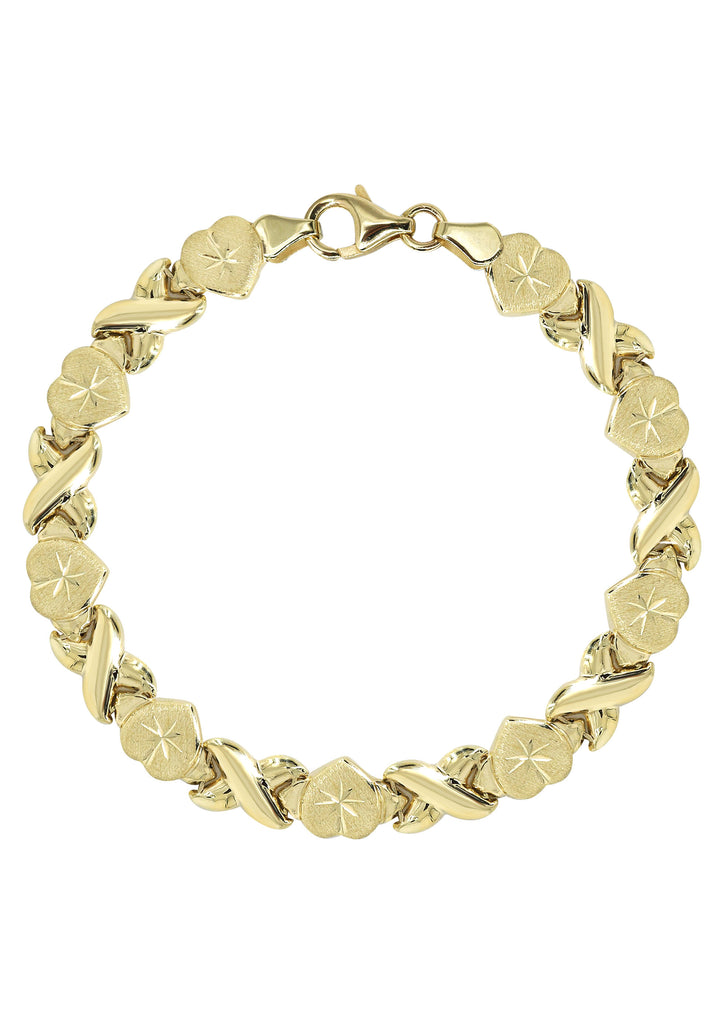 Hollow XO Heart Bracelet that comes in 10K & 14K Yellow Gold. Please select the metal purity and we will custom make it for you.
