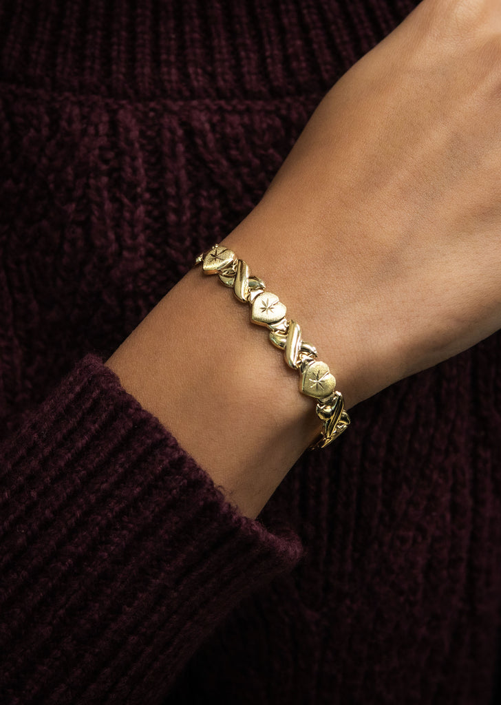 YELLOW GOLD "XO HEART" HOLLOW BRACELET FOR WOMEN | APPX 4.6 GRAMS