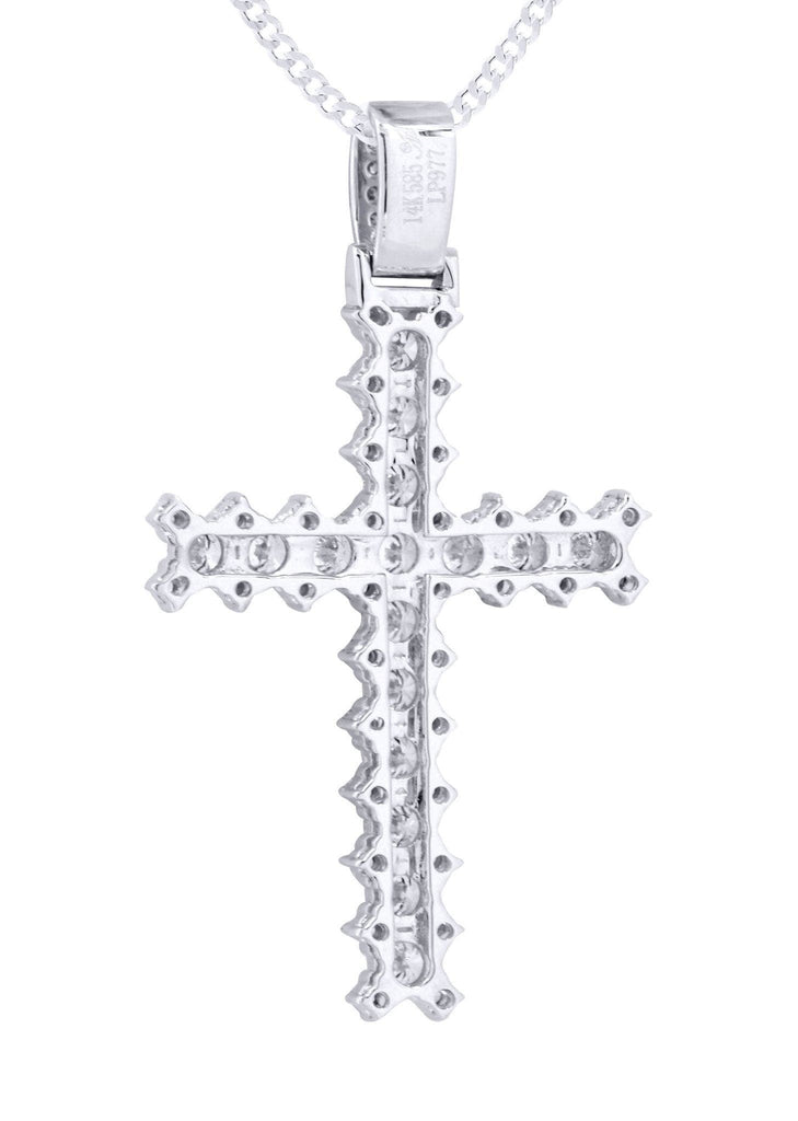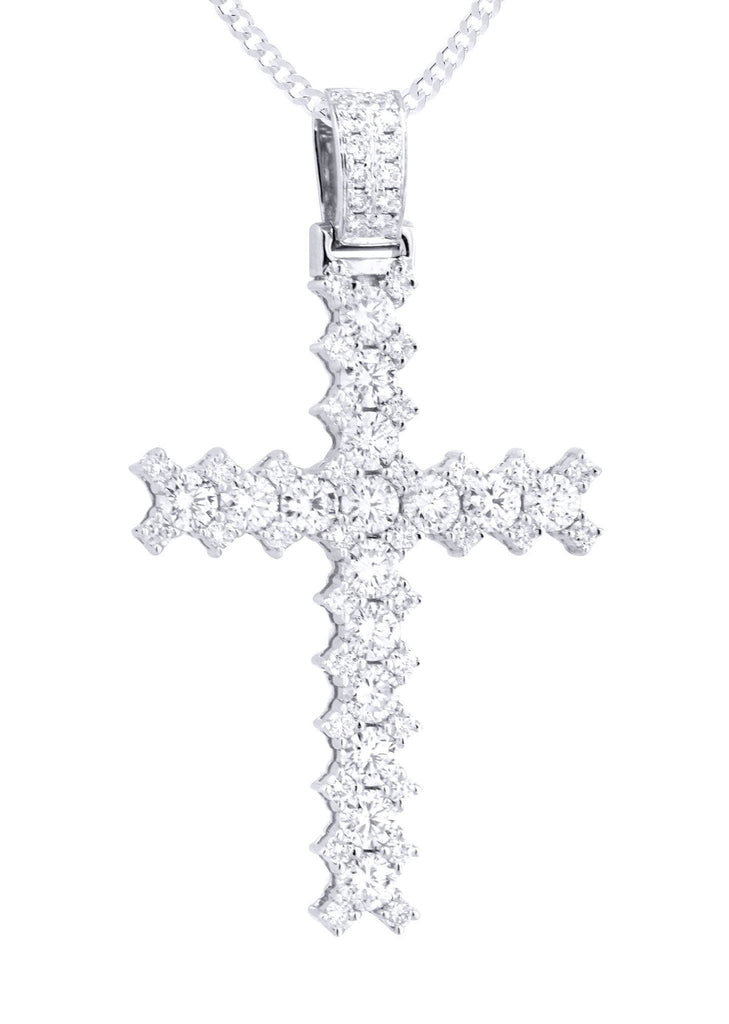 14K White Gold Diamond Cross Necklace | 1.86 Carats