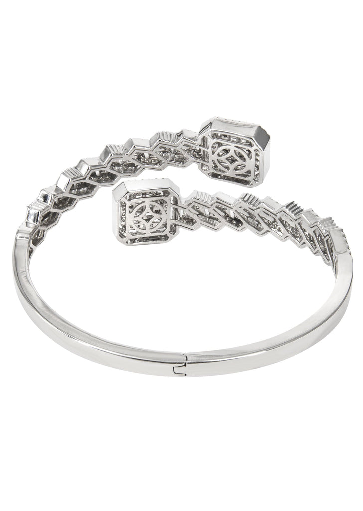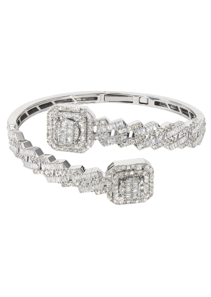 14K White Gold Baguette Diamond Bangle. This bracelet has a total of 4.8 carats of VS quality diamonds & F-G in color. The total weight of this bracelet is 36.35 grams.