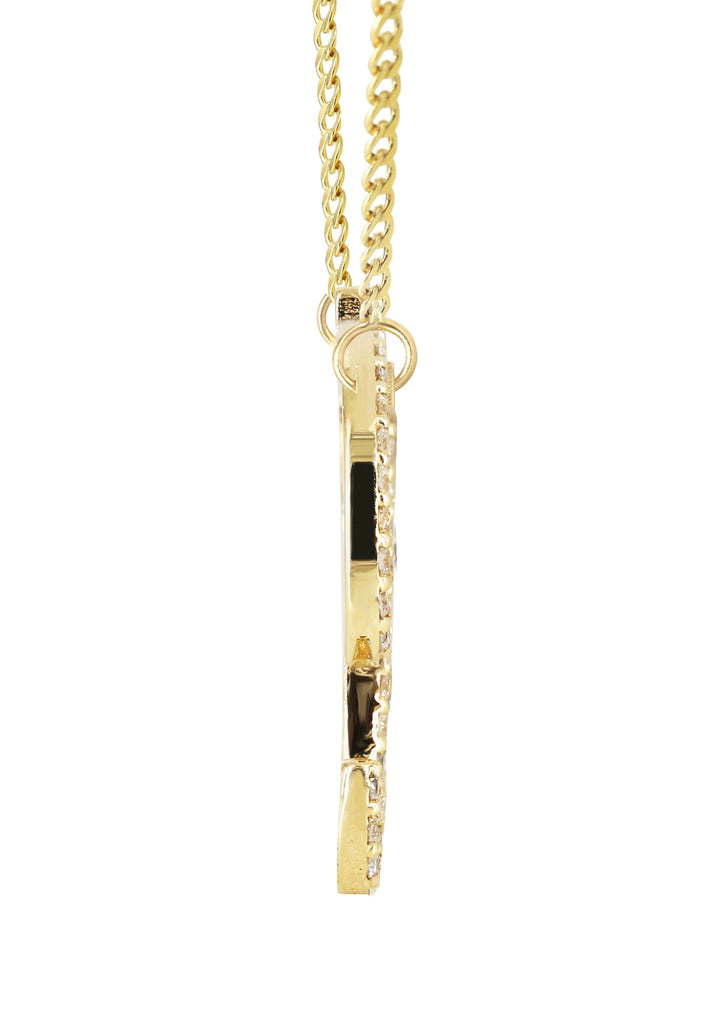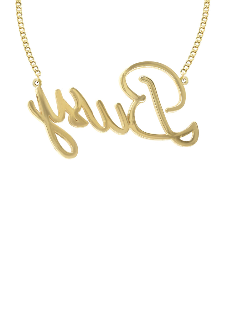 14K Ladies Full Diamond Script Name Necklace With Approximately 1.25 Carats of Round Brilliant . The length of the pendant is 0.7 inches and the width is 1.5 inches. The name plate comes with a cuban chain which can be selected to any length above. Due to the custom nature of this product, please allow 10-14 business days for completion.