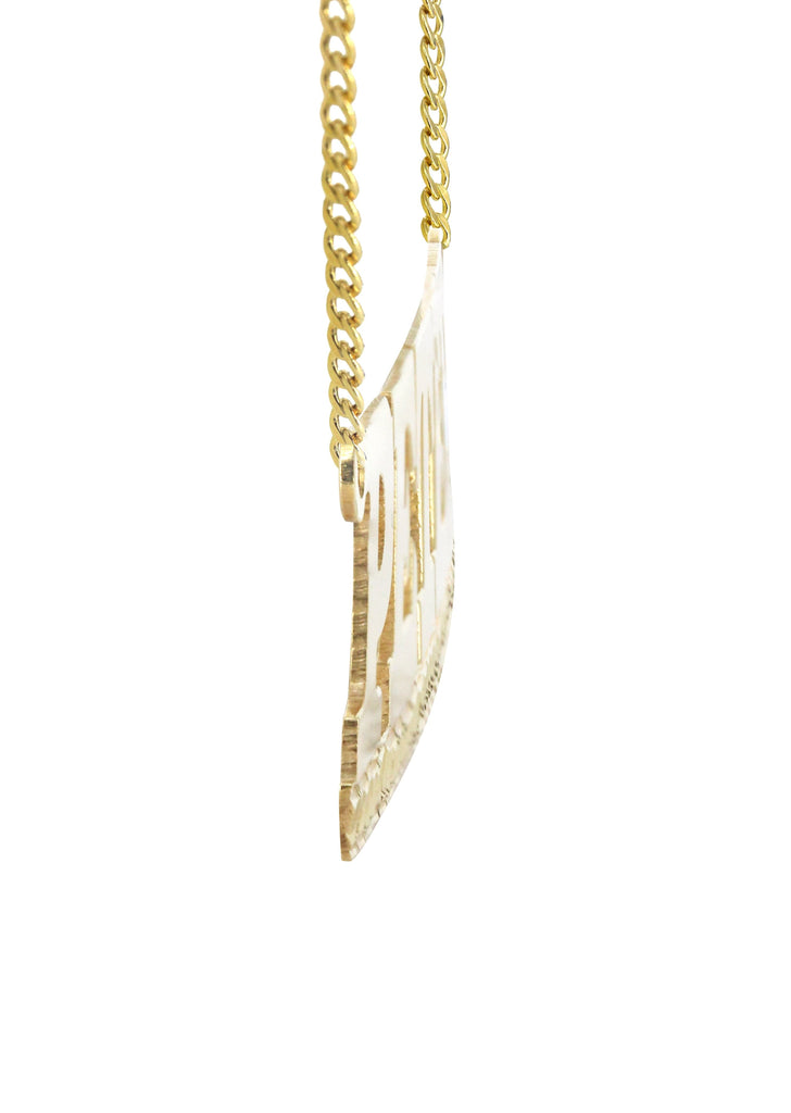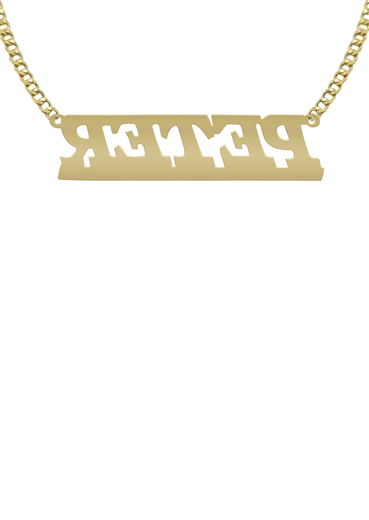 14K Ladies Diamond Cut Name Plate Necklace. The length of the pendant is 0.5 inches and the width is 1.8 inches. The name plate comes with a cuban chain which can be selected to any length above. Due to the custom nature of this product, please allow 10-14 business days for completion.