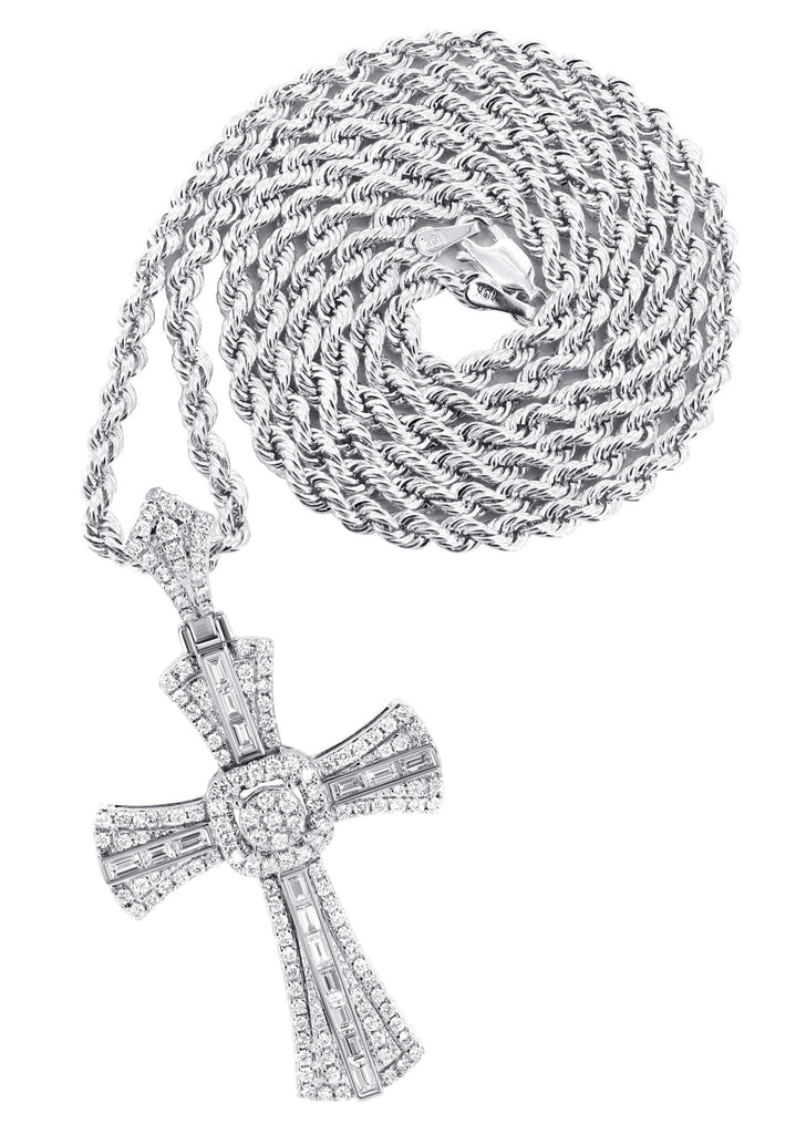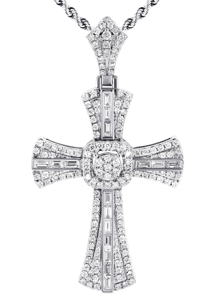 14K White Gold Diamond Cross Necklace | 2.46 Carats