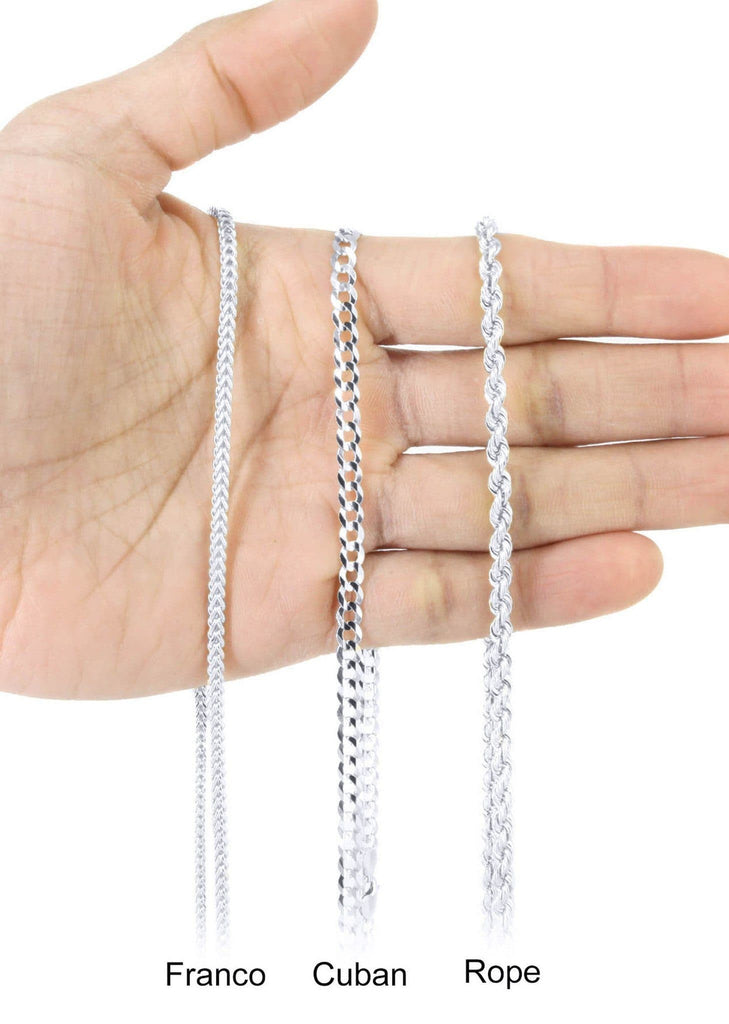 14K White Gold Diamond Picture Pendant Necklace which comes in 1.8 Inches in length and 1.2 Inches in width. The chain options include a gold Cuban chain, Franco or Rope with a width of 3 MM and the length can be selected to any preference. Total Gram Weight Is 20.6. Pendant weighs 10.6 grams and the chain weighs approximately 10 Grams.