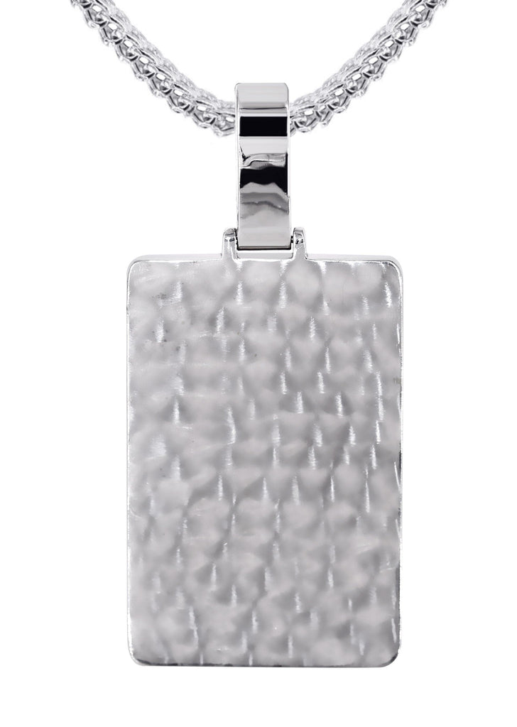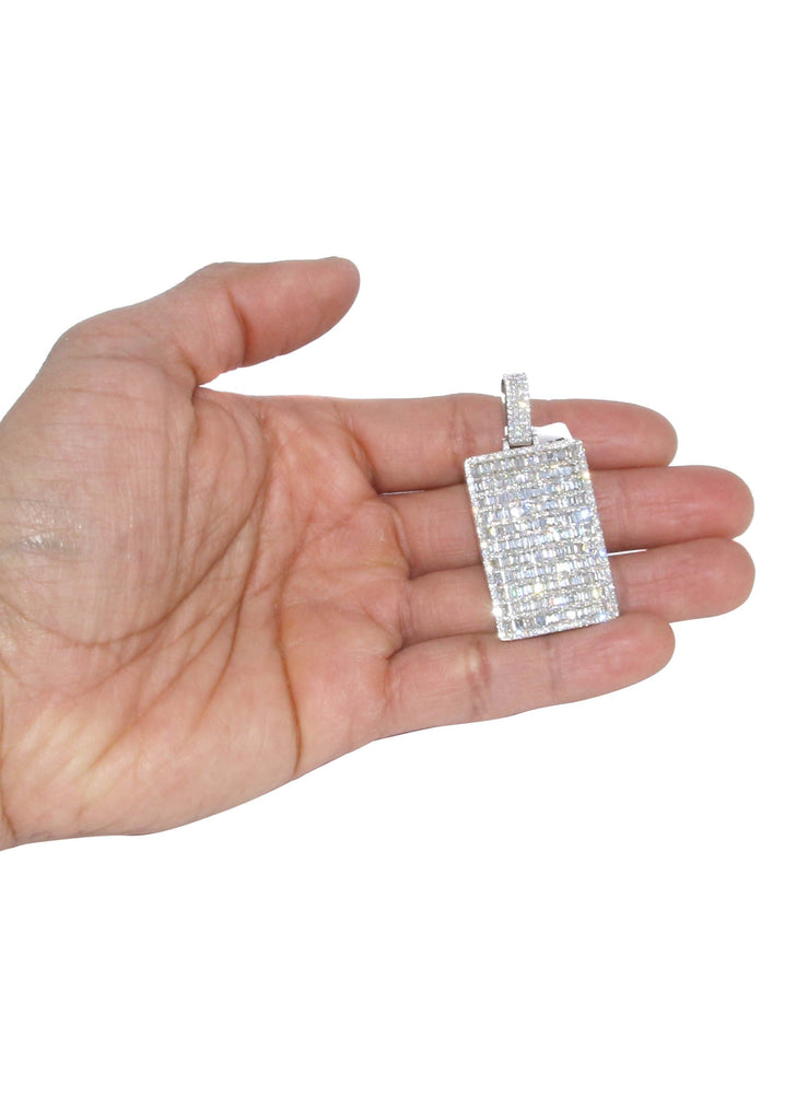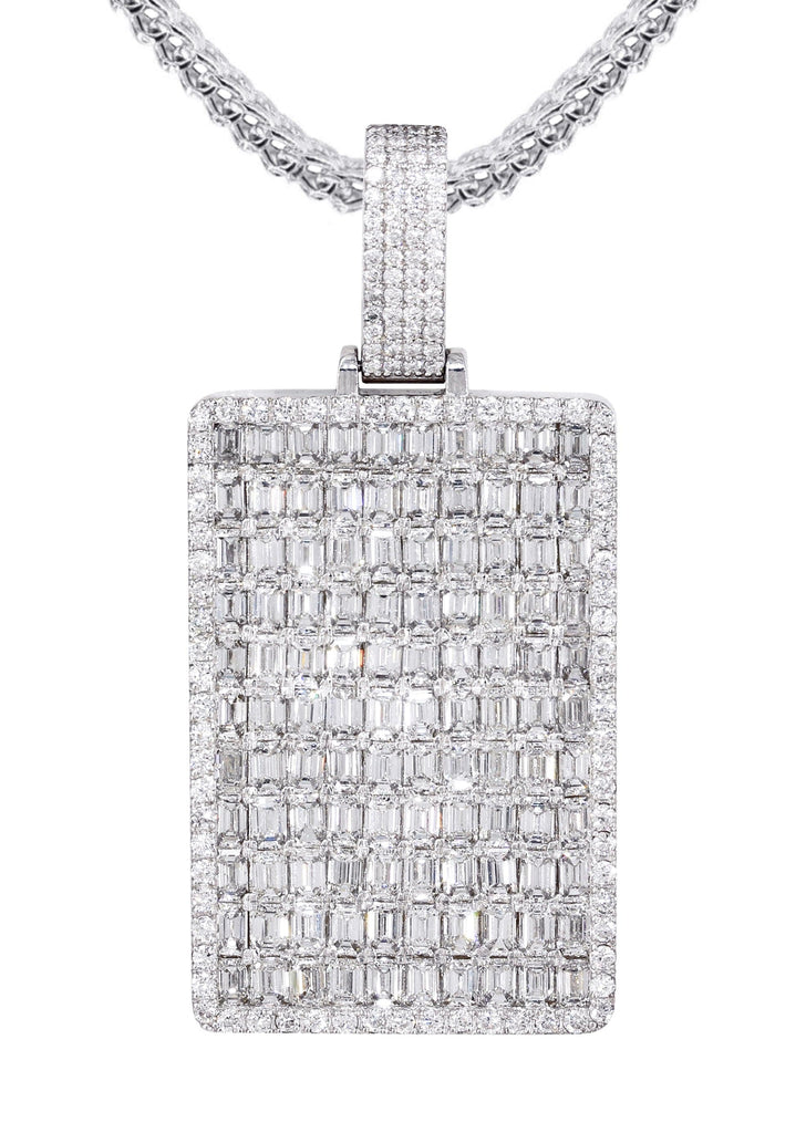 | 14K Yellow Gold Dog Tag Diamond Pendant & Cuban Chain which comes in 1.75 Inches in length and 1 Inch in width. The pendant has 10.8 Carats of Vs quality diamonds. The chain options include a 10k gold cuban chain, franco or rope with a width of 3mm's and the length can be selected to any preference. |