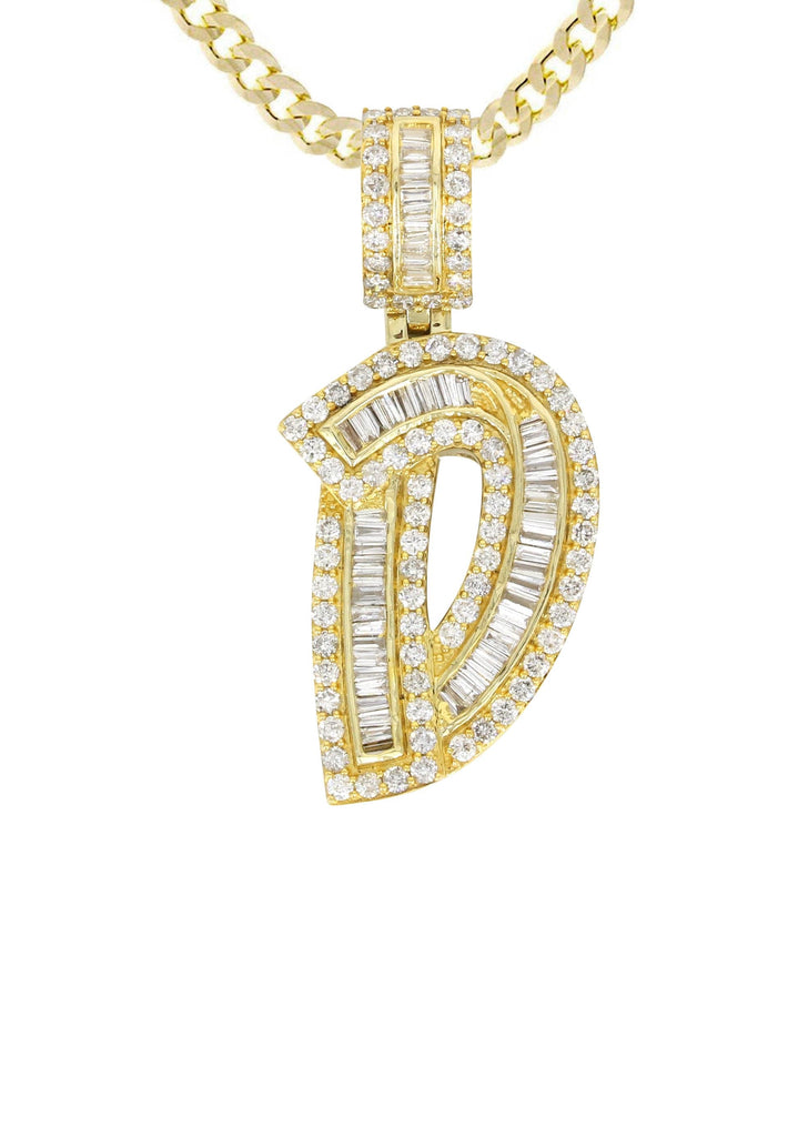 14K Yellow Gold Letter "D" Baguette Diamond Necklace | 2.16 Carats