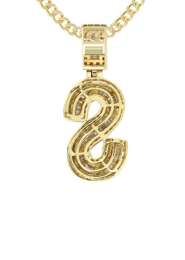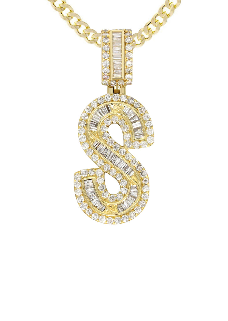 14K Yellow Gold Letter "S" Baguette Diamond Necklace | 1.96 Carats