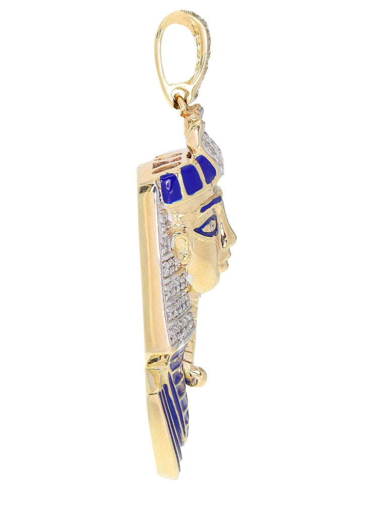 Pharoh Pendant In 14K Yellow Gold Weighing 14.37 Grams With 0.6 Carats Of Diamonds