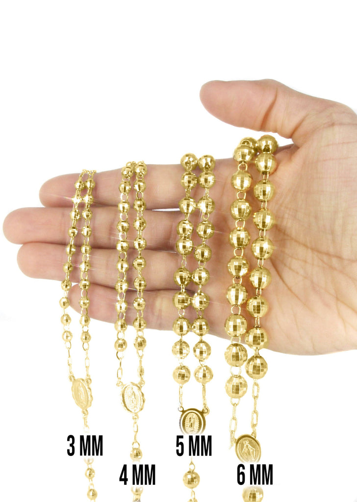 Yellow Gold Rosary Chain | 14K Yellow Gold. These chains are customizable, so you can pick your width above. Once you selected your width, you can see the adjusted gram weight above the price.