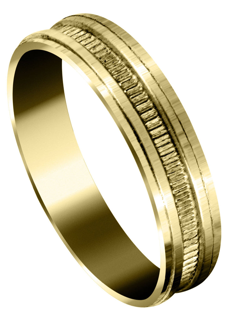 Yellow Gold Basic Carved Celtic Mens Wedding Band | Stone Finish (Gavin)