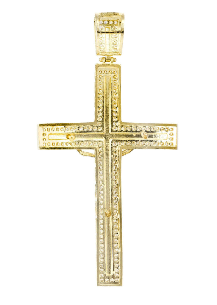 Big Cross and Cz 10K Yellow Gold Pendant. The Pendant Weighs Approximately 10.8 Grams With An Average Length Of 75 Mm And Average Width Of 39 Mm