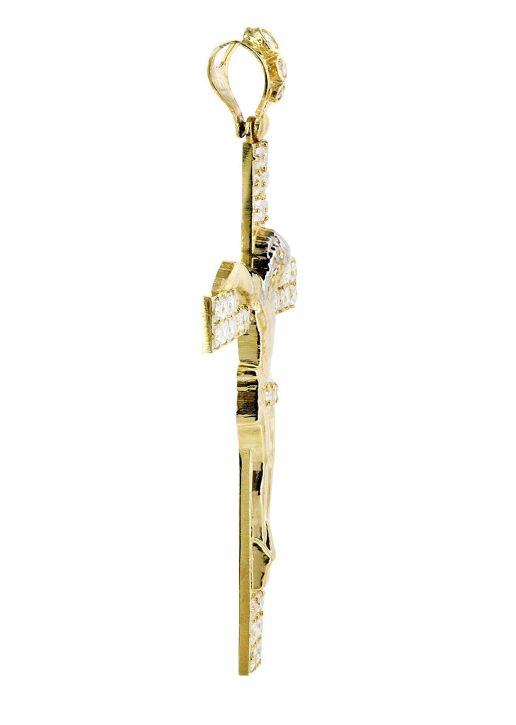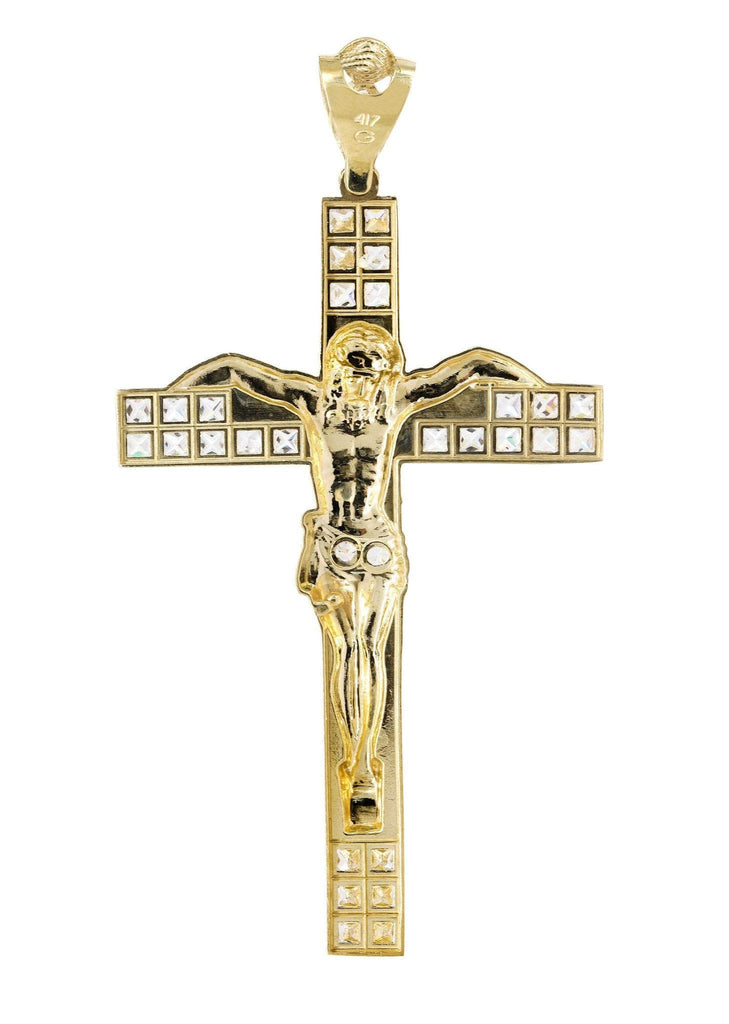 Big Cross and Cz 10K Yellow Gold Pendant. The Pendant Weighs Approximately 11.2 Grams With An Average Length Of 95 Mm And Average Width Of 50 Mm