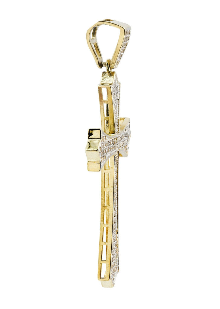 Big Cross and Cz 10K Yellow Gold Pendant. The Pendant Weighs Approximately 4.8 Grams With An Average Length Of 57 Mm And Average Width Of 30 Mm