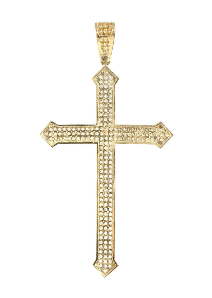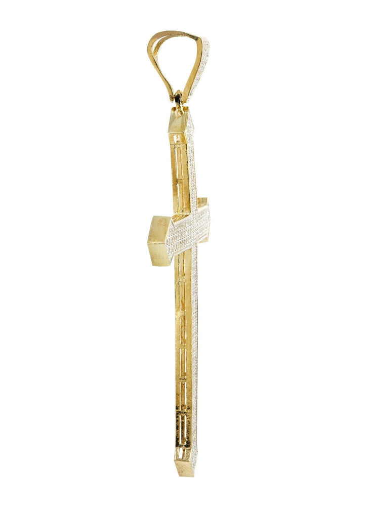 Big Cross and Cz 10K Yellow Gold Pendant. The Pendant Weighs Approximately 6.4 Grams With An Average Length Of 73 Mm And Average Width Of 39 Mm