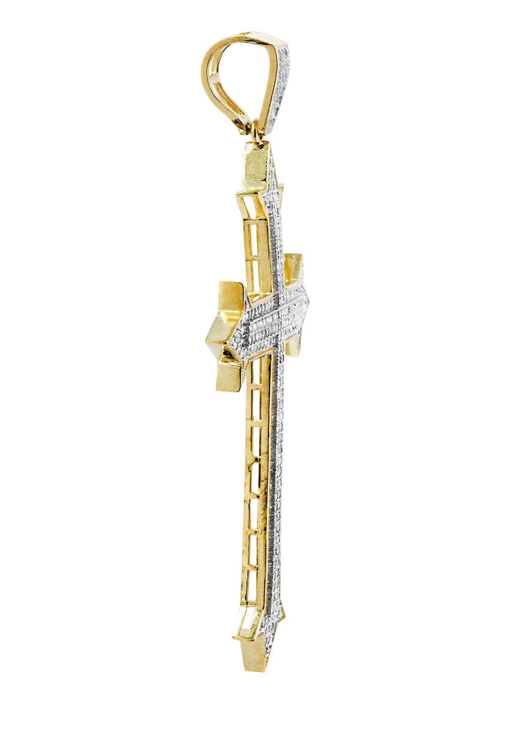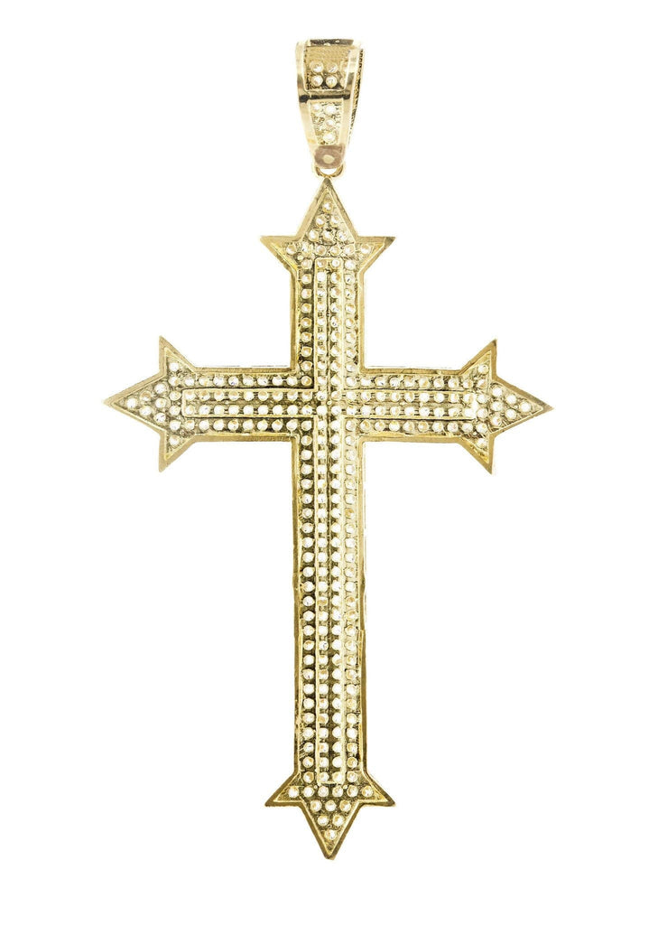 Big Cross and Cz 10K Yellow Gold Pendant. The Pendant Weighs Approximately 7.8 Grams With An Average Length Of 75 Mm And Average Width Of 41 Mm