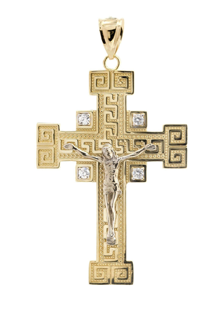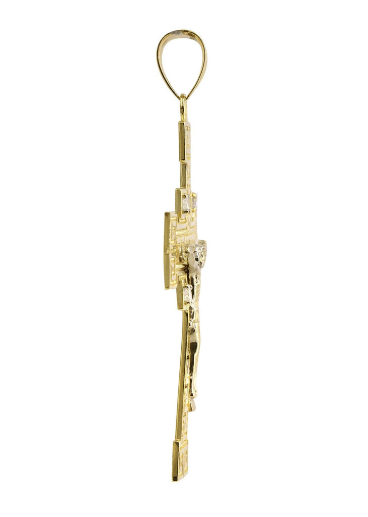 Big Crucifix and Cz 10K Yellow Gold Pendant. The Pendant Weighs Approximately 8.8 Grams With An Average Length Of 70 Mm And Average Width Of 40 Mm
