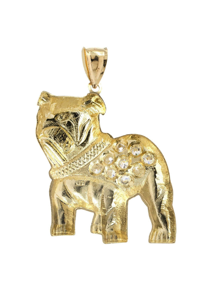 Big Dog and Cz 10K Yellow Gold Pendant. The Pendant Weighs Approximately 11 Grams With An Average Length Of 55 Mm And Average Width Of 40 Mm