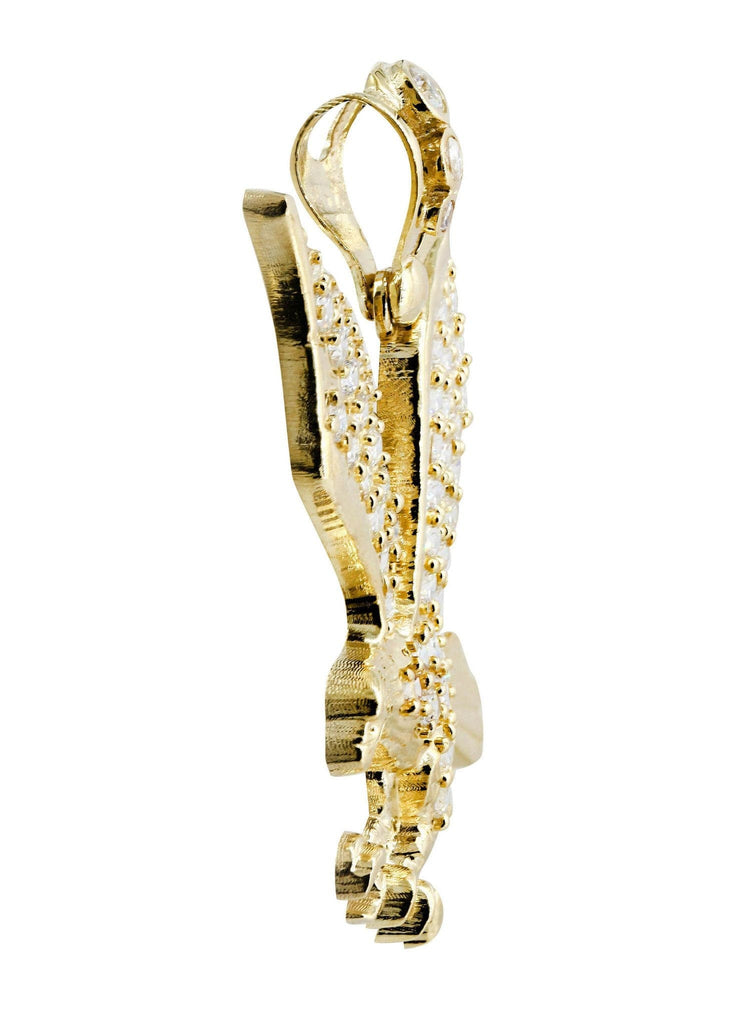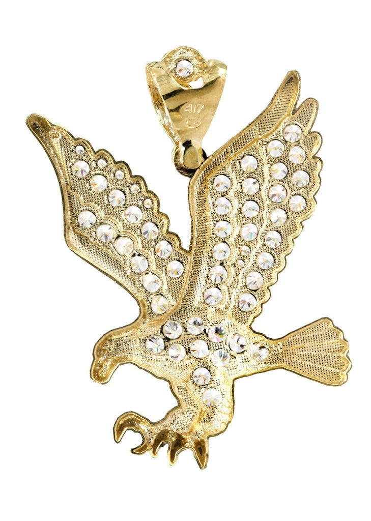 Big Eagle and Cz 10K Yellow Gold Pendant. The Pendant Weighs Approximately 10.7 Grams With An Average Length Of 52 Mm And Average Width Of 40 Mm