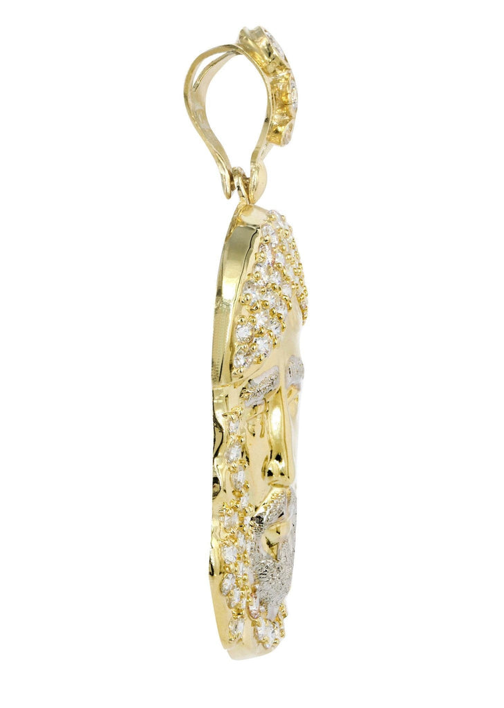 Big Jesus Piece and Cz 10K Yellow Gold Pendant. The Pendant Weighs Approximately 11 Grams With An Average Length Of 60 Mm And Average Width Of 32 Mm