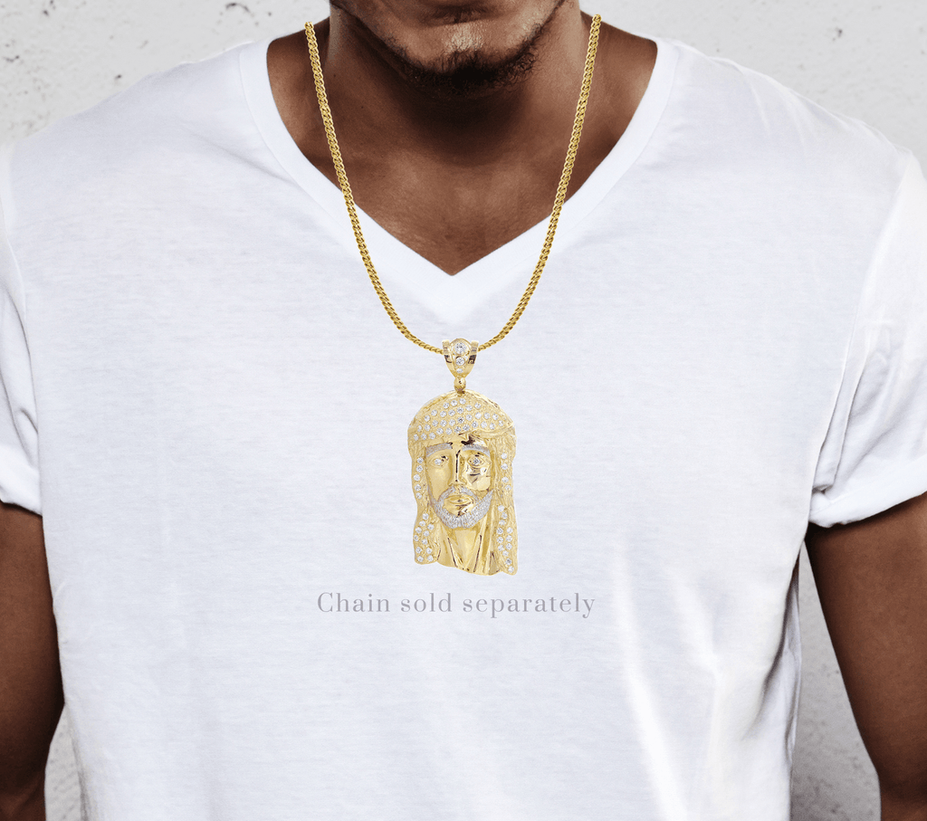 Big Jesus Piece and Cz 10K Yellow Gold Pendant. The Pendant Weighs Approximately 111.6 Grams With An Average Length Of 135 Mm And Average Width Of 60 Mm