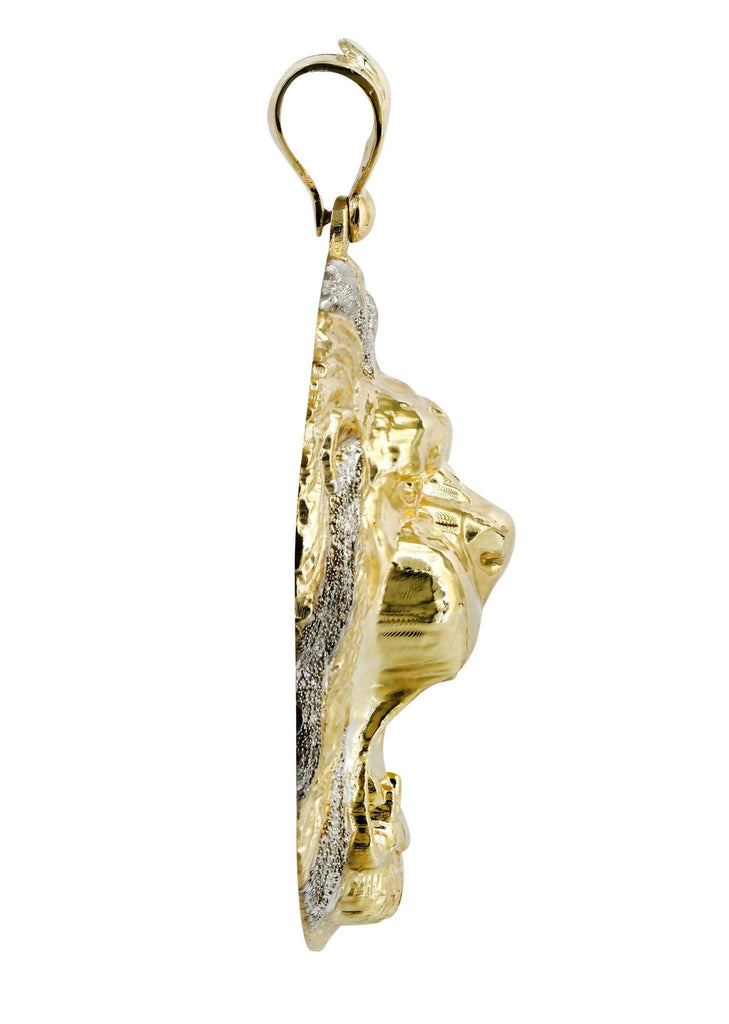 Big Lion 10K Yellow Gold Pendant. The Pendant Weighs Approximately 28.3 Grams With An Average Length Of 80 Mm And Average Width Of 55 Mm