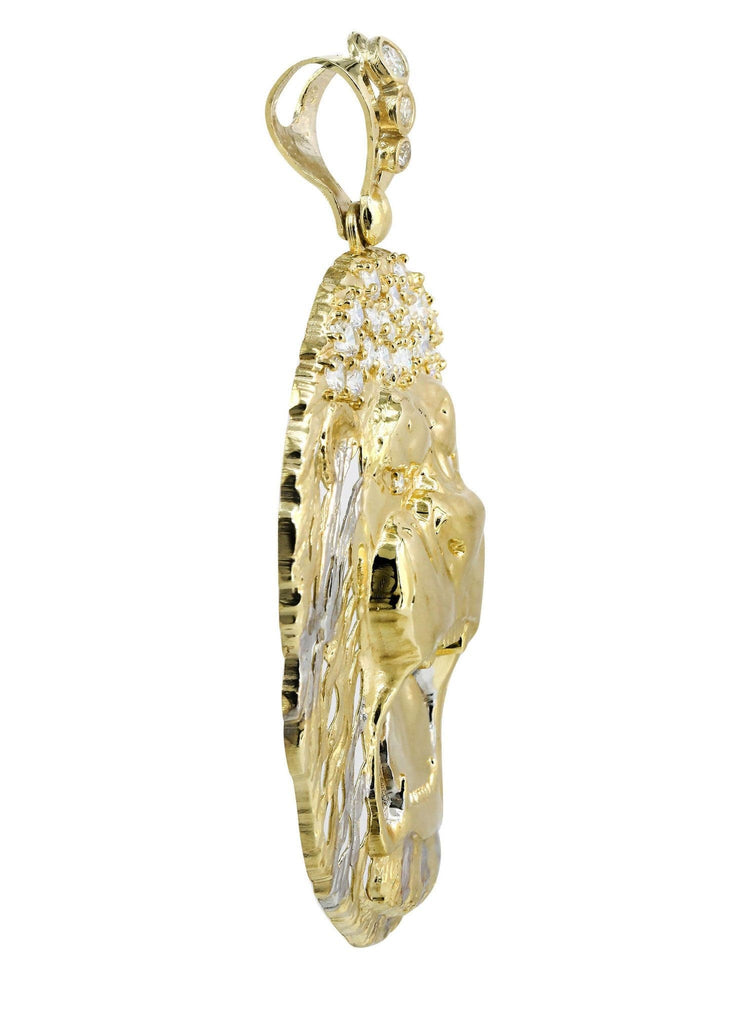 Big Lion and Cz 10K Yellow Gold Pendant. The Pendant Weighs Approximately 17.9 Grams With An Average Length Of 83 Mm And Average Width Of 55 Mm