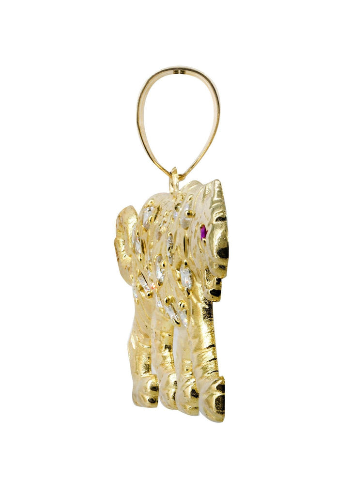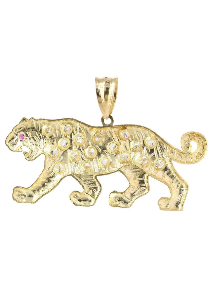 Big Tiger and Cz 10K Yellow Gold Pendant. The Pendant Weighs Approximately 19.1 Grams With An Average Length Of 55 Mm And Average Width Of 85 Mm