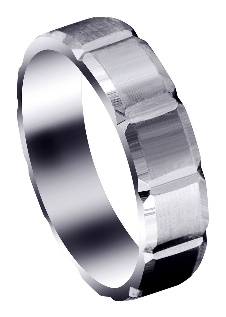 Carved Diamond Cut Mens Wedding Band Which Comes In 8 Mm Width,  The Ring Is In Satin Finish And Can Be Made In Any Metal Of Choice As Selected Above.