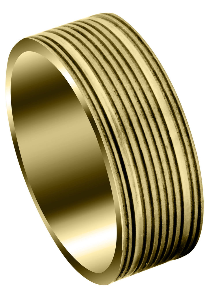 Carved Modern Mens Wedding Band Which Comes In 8 Mm Width,  The Ring Is In GB / High Polish Finish And Can Be Made In Any Metal Of Choice As Selected Above.