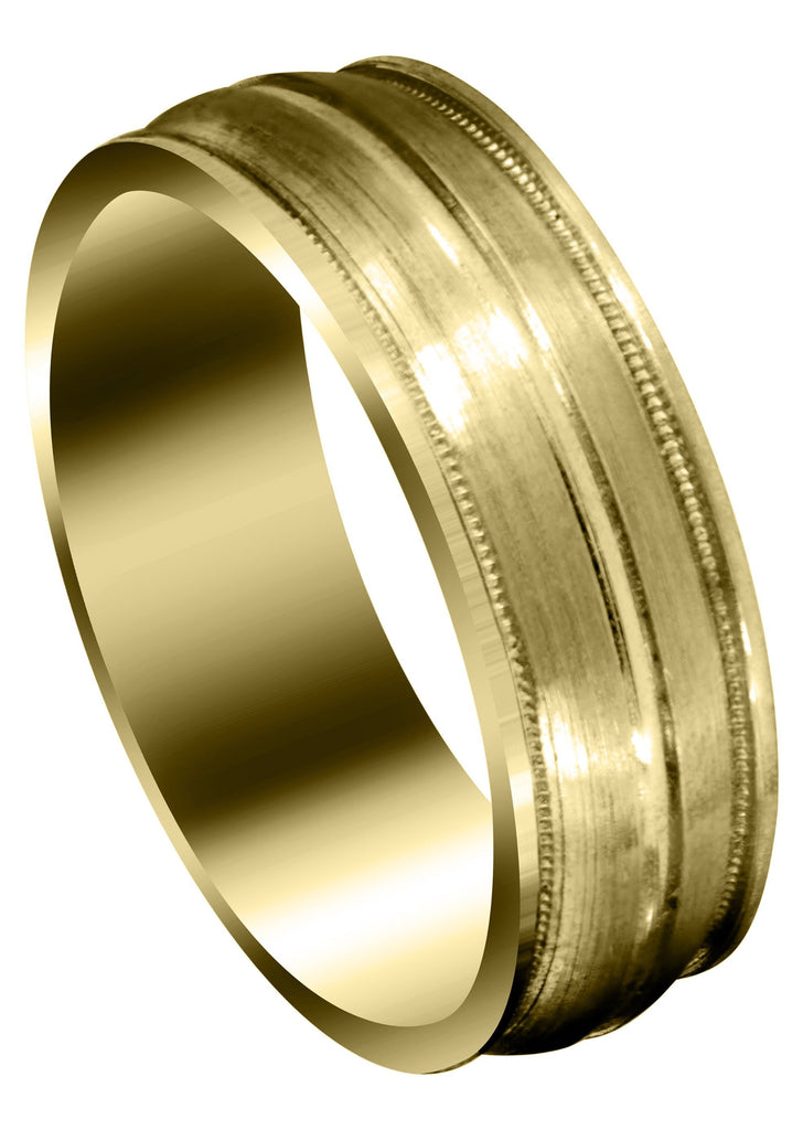 Carved Modern Mens Wedding Band Which Comes In 7 Mm Width,  The Ring Is In Satin / Hish Polish Finish And Can Be Made In Any Metal Of Choice As Selected Above.
