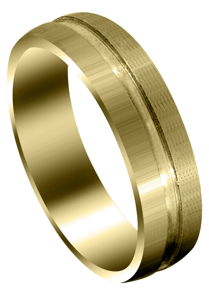 Yellow Gold Carved Simple Mens Wedding Band | Satin Finish (Matthew)