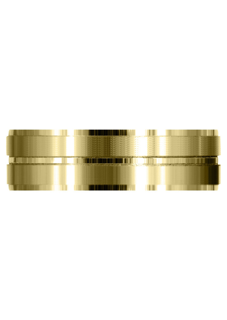Yellow Gold Carved Simple Mens Wedding Band | Satin Finish (Benjamin)