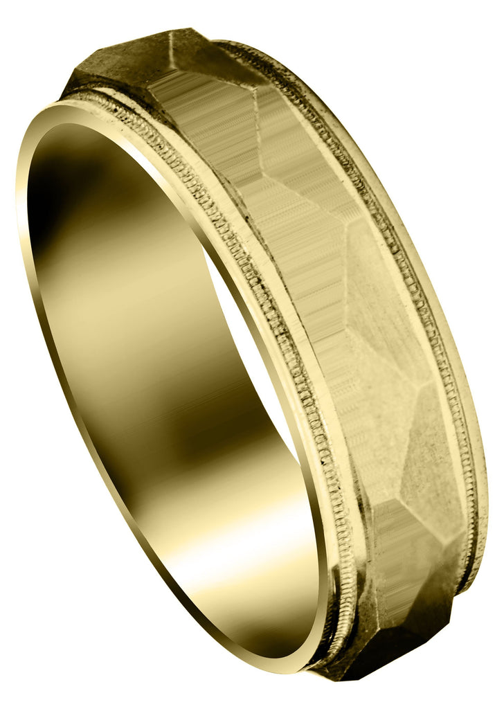Yellow Gold Carved Simple Mens Wedding Band | Wire Matt Finish (Elias)