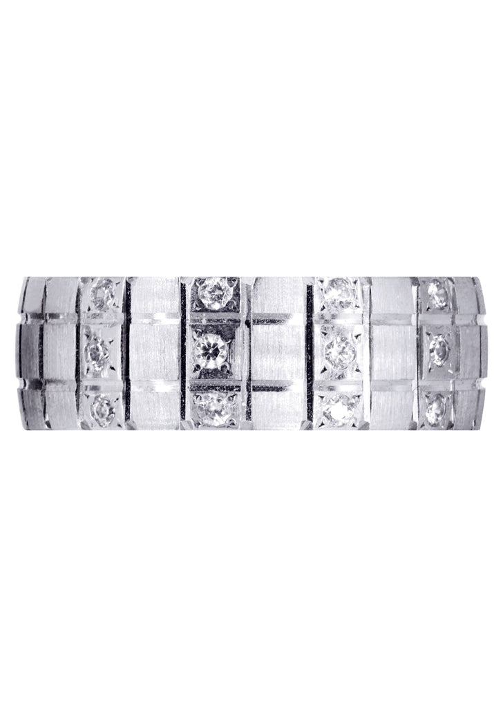 Classic Diamond Mens Wedding Band Which Comes In 8 Mm Width, With 0.18 Carats Of VS Quality Diamonds.  The Ring Is In Cross Satin Finish And Can Be Made In Any Metal Of Choice As Selected Above.