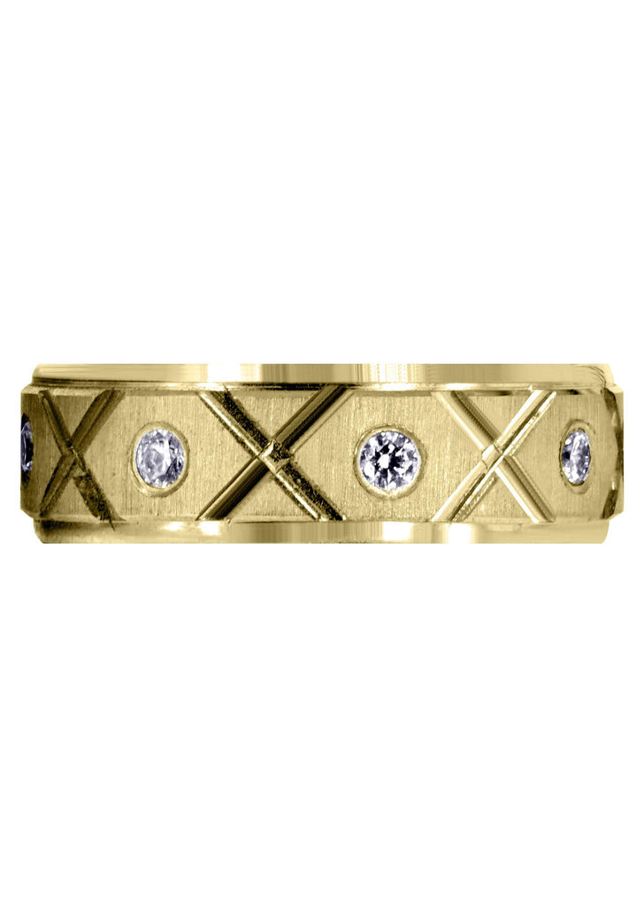Classic Diamond Mens Wedding Band Which Comes In 6.5 Mm Width, With 0.4 Carats Of VS Quality Diamonds.  The Ring Is In Cross Satin Finish And Can Be Made In Any Metal Of Choice As Selected Above.