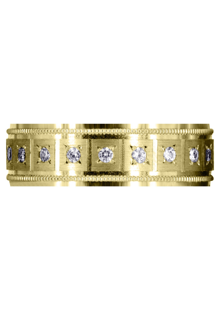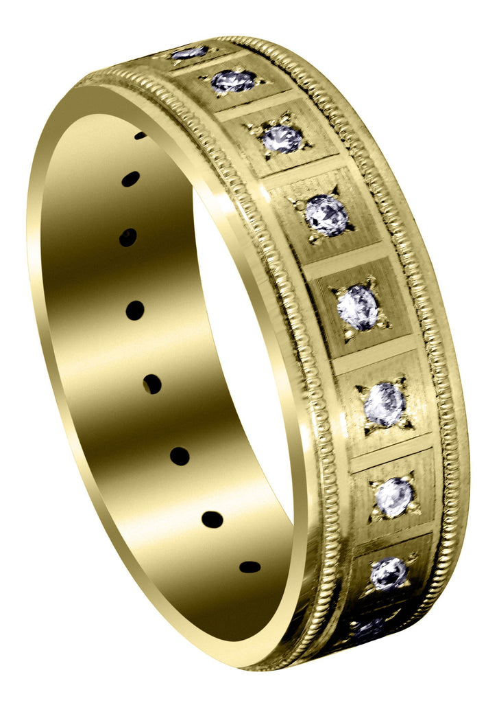 Yellow Gold Classic Diamond Mens Wedding Band | 0.4 Carats (River)