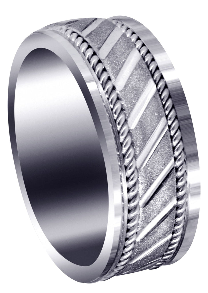 Contemporary Mens Wedding Band Which Comes In 9 Mm Width,  The Ring Is In Stone Finish And Can Be Made In Any Metal Of Choice As Selected Above.