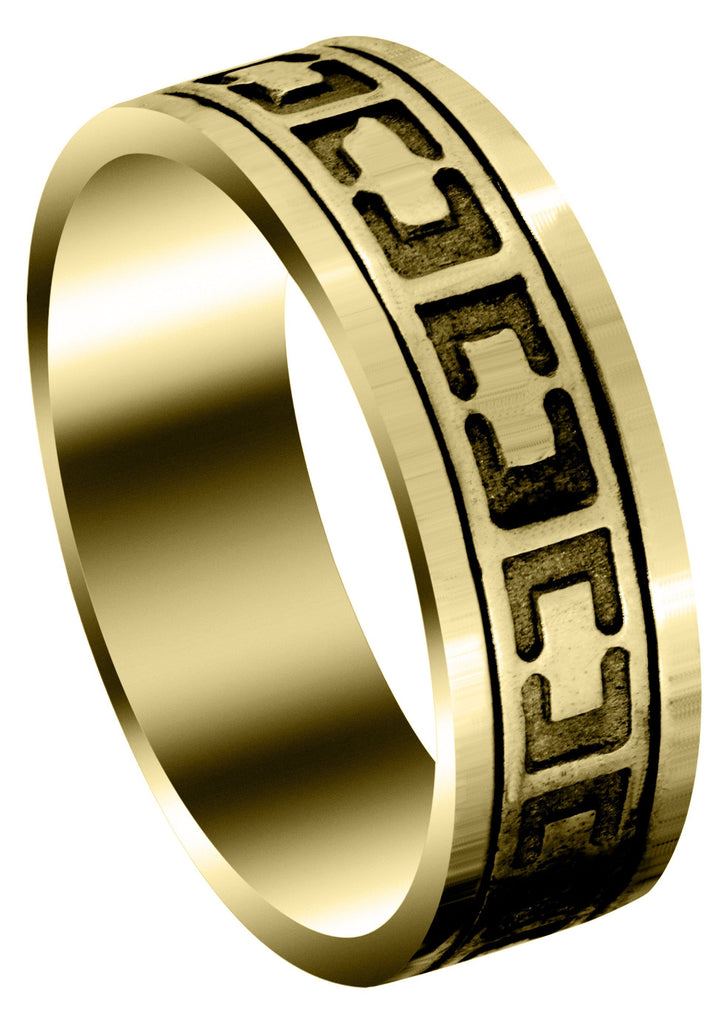 Yellow Gold Contemporary Mens Wedding Band | Sand Blast / High Polish Finish (Santiago)