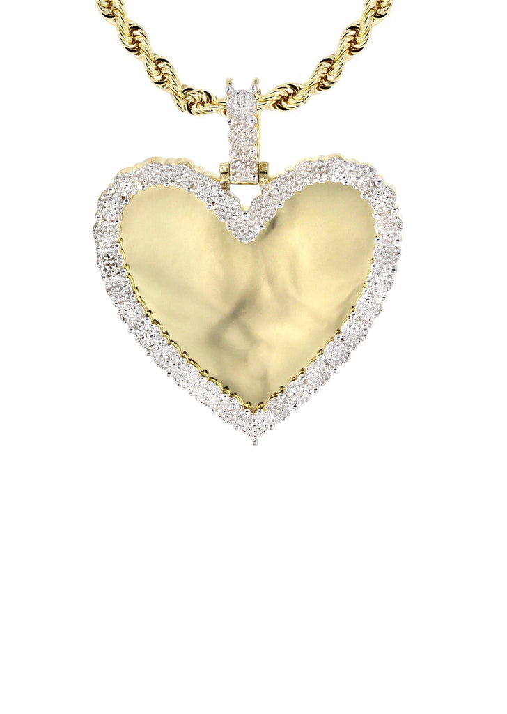 10K Yellow Gold Diamond Picture Pendant Necklace which comes in 1.4 Inches in length and 1.1 Inches in width. The chain options include a 10K gold Cuban chain, Franco or Rope with a width of 3 MM and the length can be selected to any preference. Total Gram Weight Is 18. Pendant weighs 8 grams and the chain weighs approximately 10 Grams. Upon placing order, we will contact you for a picture to put on the pendant. Due to the custom nature of this product, please allow up to 1 week for production. |