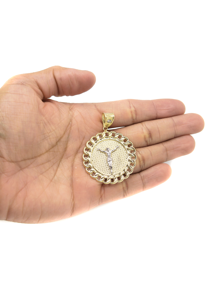 10K Yellow Gold Round Crucifix Pendant. Check image for size and weight