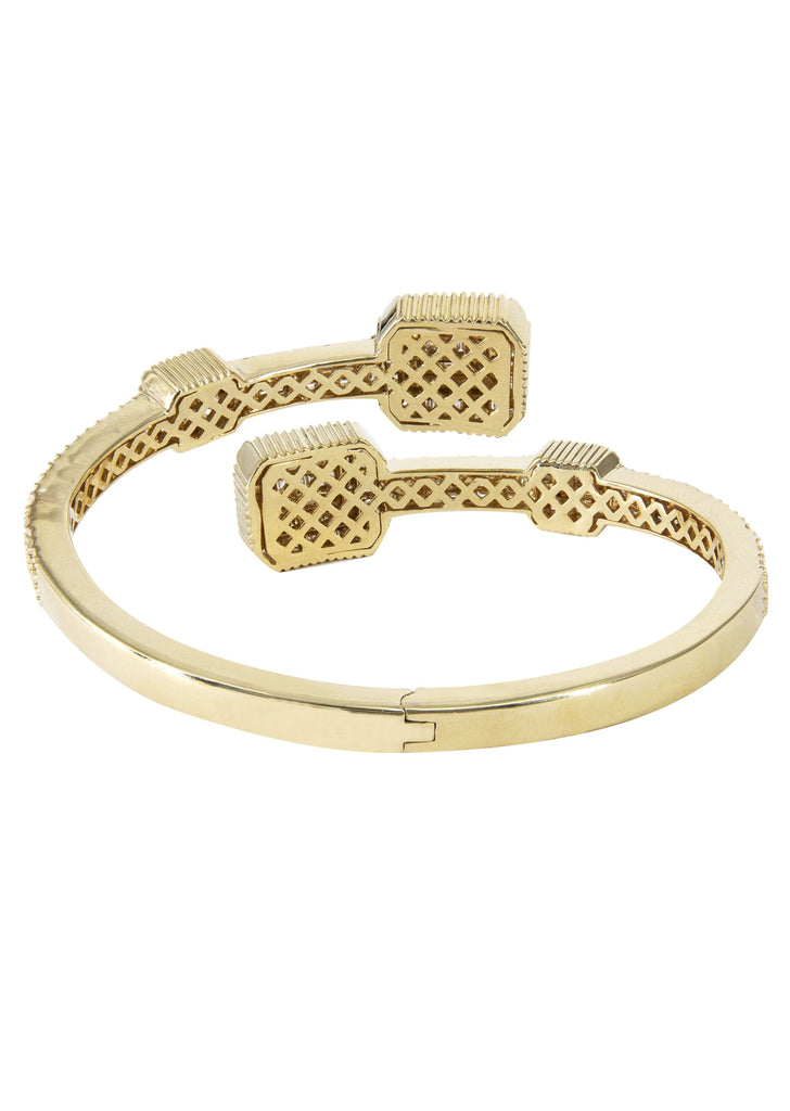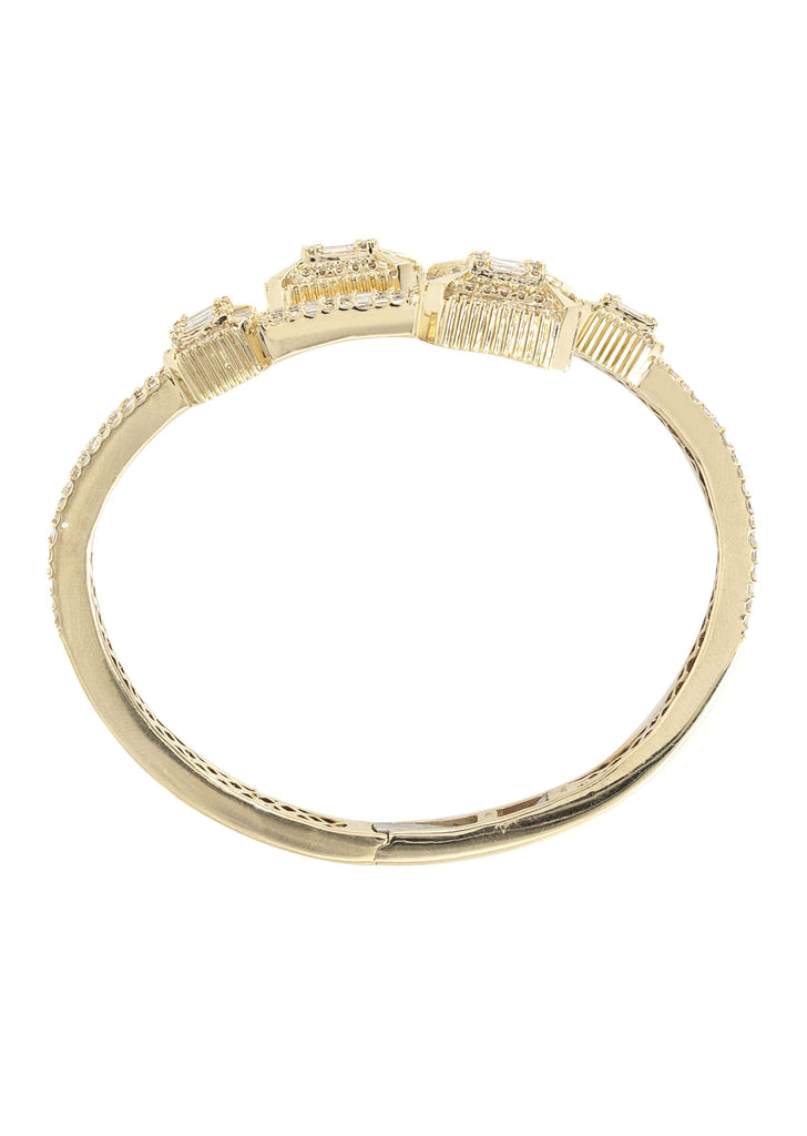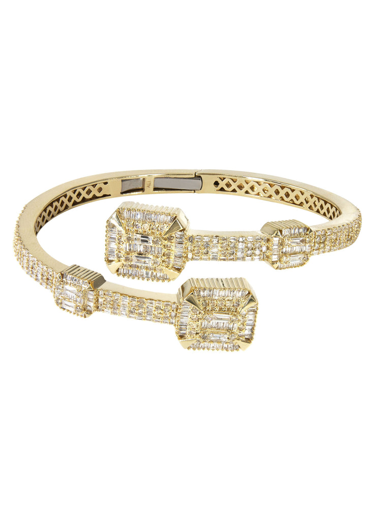 14K Yellow Gold Diamond Baguette Bangle Bracelet. This bracelet has a total of 3.8 carats of VS quality diamonds & F-G in color. The total weight of this bracelet is 30.16 grams.