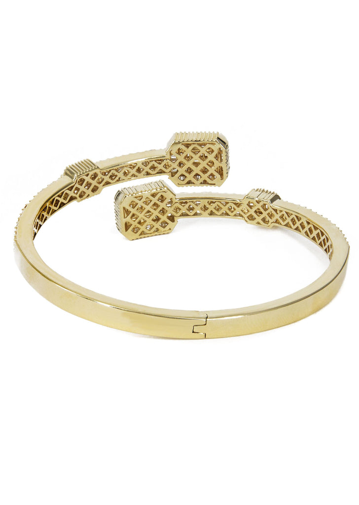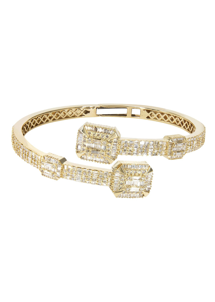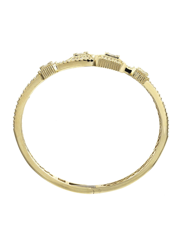 14K Yellow Gold Diamond Baguette Bangle Bracelet. This bracelet has a total of 3.29 carats of VS quality diamonds & F-G in color. The total weight of this bracelet is 29 grams.