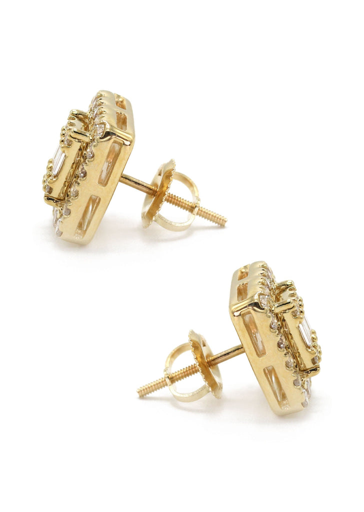 14K Yellow Gold Diamond Baguette Earrings For Men | 0.96 Carats | 4.51 Grams