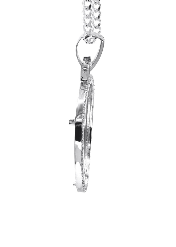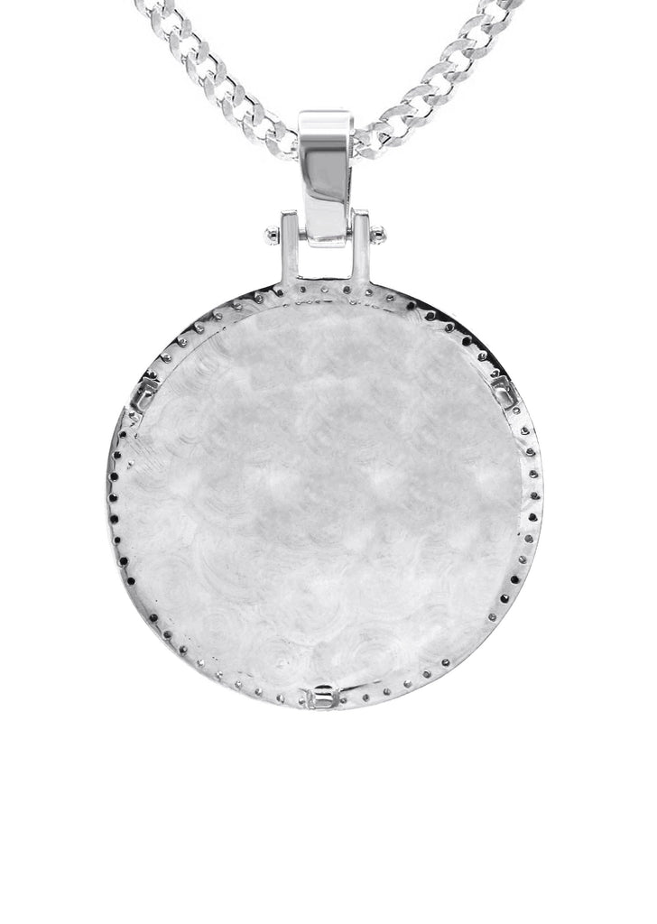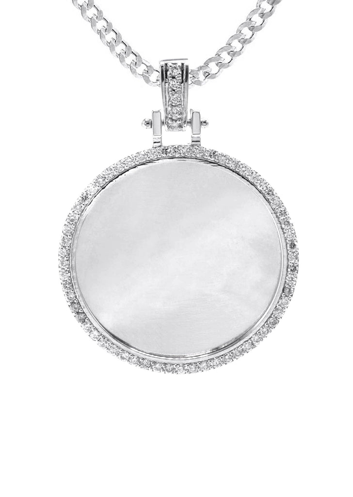 10K or 14K White Gold Diamond Picture Pendant Necklace which comes in 1.1 Inches in length and 1.6 Inches in width. The chain options include a 10K gold Cuban chain, Franco or Rope with a width of 3 MM and the length can be selected to any preference. Total Gram Weight Is 17.8. Pendant weighs 7.8 grams and the chain weighs approximately 10 Grams. Upon placing order, we will contact you for a picture to put on the pendant. Due to the custom nature of this product, please allow up to 1 week for production. |