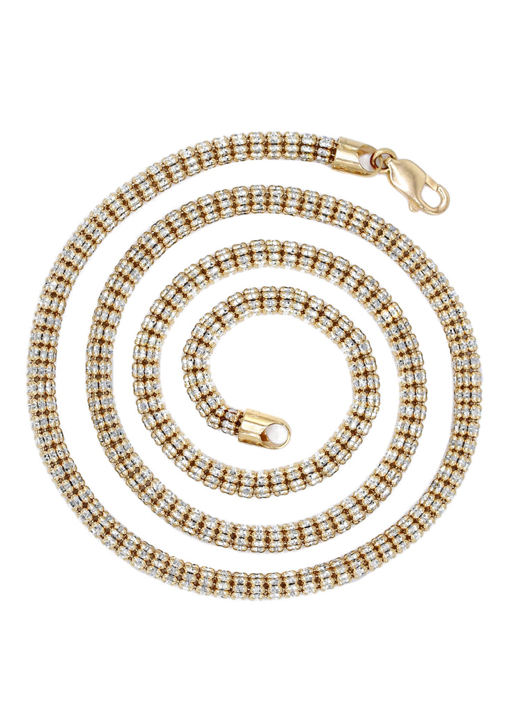 Yellow Ice Chain | 10K or14K Yellow Gold. These chains are fully customizable, so you can pick your gold purity, length and width above. Once you selected your purity, length and width, you can see the adjusted gram weight below the price.