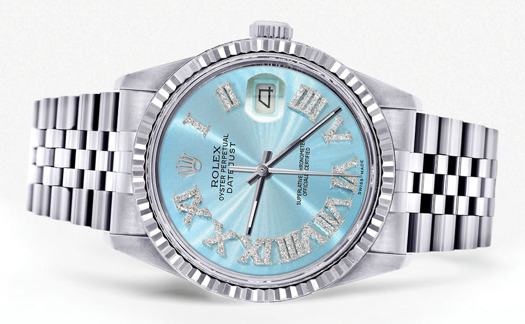 Womens Rolex Datejust Watch 16200 | Fluted Bezel | 36Mm | Aqua Roman Numeral Dial | Fluted Bezel | Jubilee Band