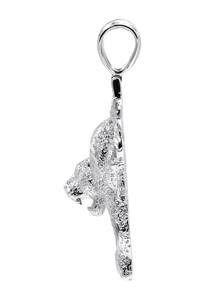 Pure Silver (925) Cheetah Pendant with Rhodium bonded 6 times to provide optimum quality. Weighs approximately 12.5 Grams.