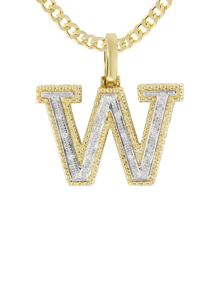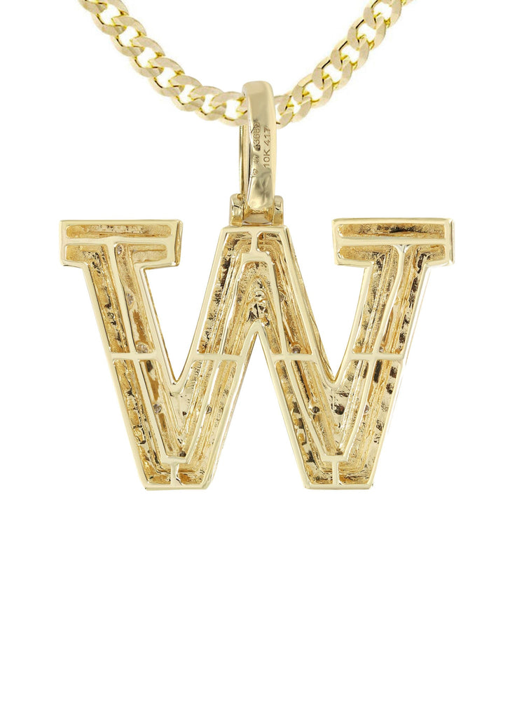 10K Yellow Gold Cuban Chain And "W" Pendant With An Approximate Total Gram Weight Of 16. Pendant Weighs 6 Grams And The Chain Weighs 10 grams. The Pendant Measurement Is 1.2 Inches In Width And A Length Of 1.3 Inches. The Width Of The Chain Is 3 Mm And The Style Along With The Length Of The Chain Can Be Selected Above.
