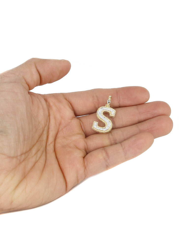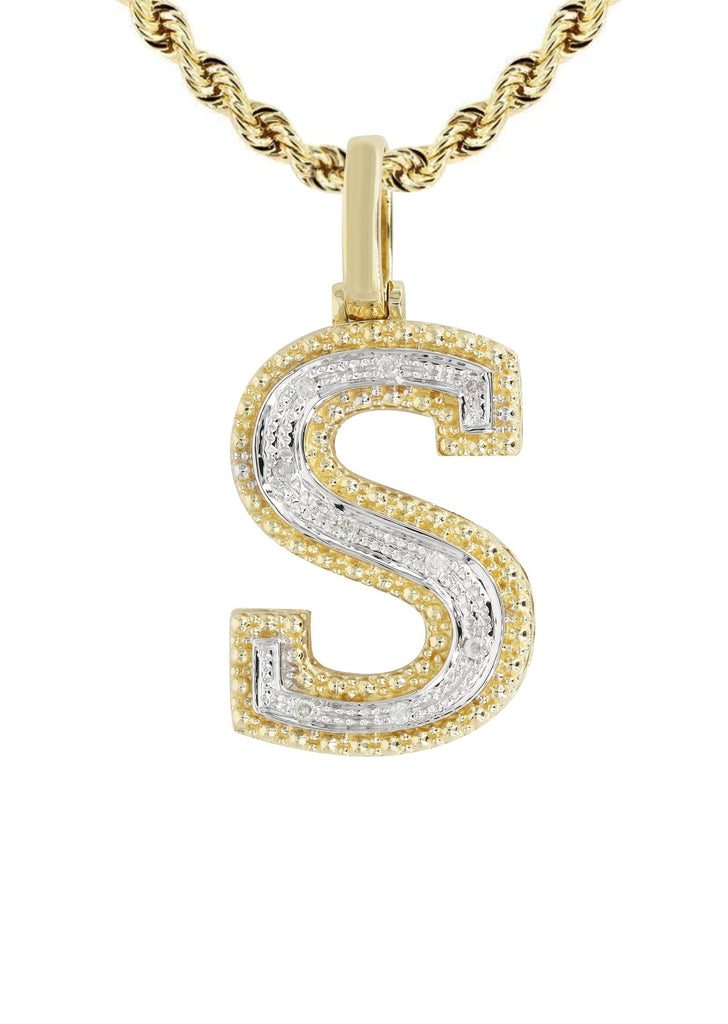 10K Yellow Gold Cuban Chain And "S" Pendant With An Approximate Total Gram Weight Of 13.5 . Pendant Weighs 3.5 Grams And The Chain Weighs 10 grams. The Pendant Measurement Is 0.7 Inches In Width And A Length Of 1.2 Inches. The Width Of The Chain Is 3 Mm And The Style Along With The Length Of The Chain Can Be Selected Above