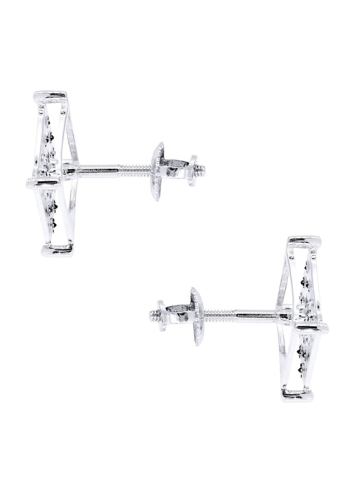 Blue And White Diamond Earrings In 14K White Gold With Approximately 0.31 Carats Of Diamonds.Earrings Come With An Average Length Of 9 Mm And 9 Mm In Width.